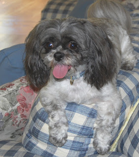 Tessie looks like a puppy but smells like a girl. She is shy and barks when she is alone sometimes and is getting used to her crate. She is learning to Stay and to Leave It. Mom says she's a love sponge, and Tessie sits on her lap all the time. I tried to sit on Mom's lap, but it was too small. Way too small.